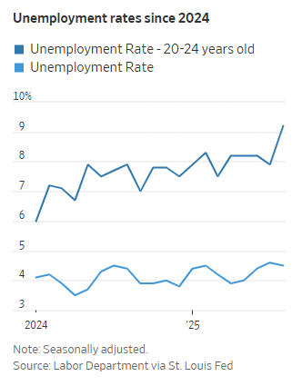 For college graduates, the situation is particularly challenging. According to ADP payroll data, the adoption of generative AI tools in late 2022 led to a 13% relative decline in employment for workers aged 22 to 25 in AI-impacted fields. The U.S. unemployment rate for people aged 20 to 24 reached 9.2% in August, more than double the overall rate, while employment for older workers in the same fields and similarly aged workers in non-AI-exposed occupations has remained stable or even increased (Stanford research).